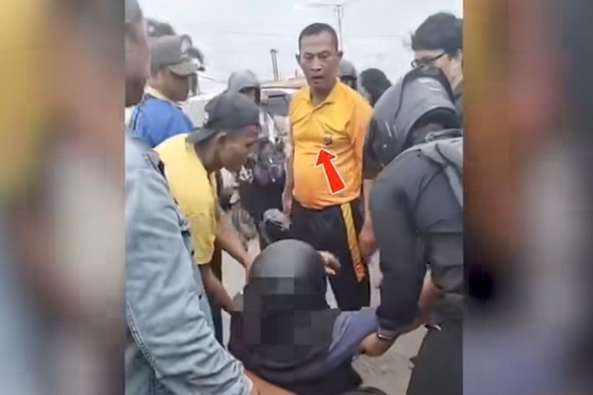 Warga yang berada di lokasi berusaha melerai, namun pria berkaus polisi tetap menghajar ALP. Warga kemudian kesal melihat perlakuan itu.