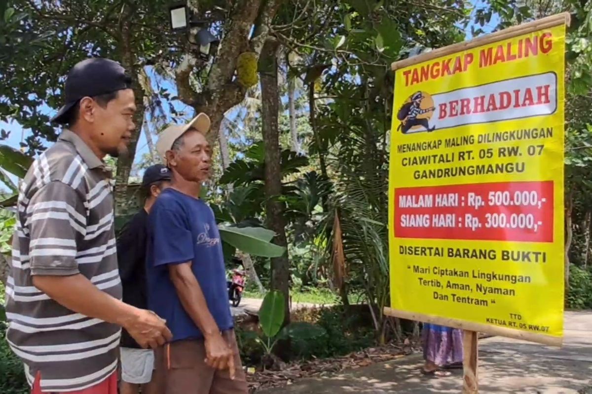 Nasional – Warga RT 05 RW 07 Dusun Ciawitali, Gandrungmangu, Kabupaten Cilacap, Jawa Tengah, punya cara unik untuk mengatasi maraknya pencurian di lingkungan mereka. Warga memasang spanduk berisi pengumuman sayembara tangkap maling dengan imbalan uang tunai hingga Rp 500.000.